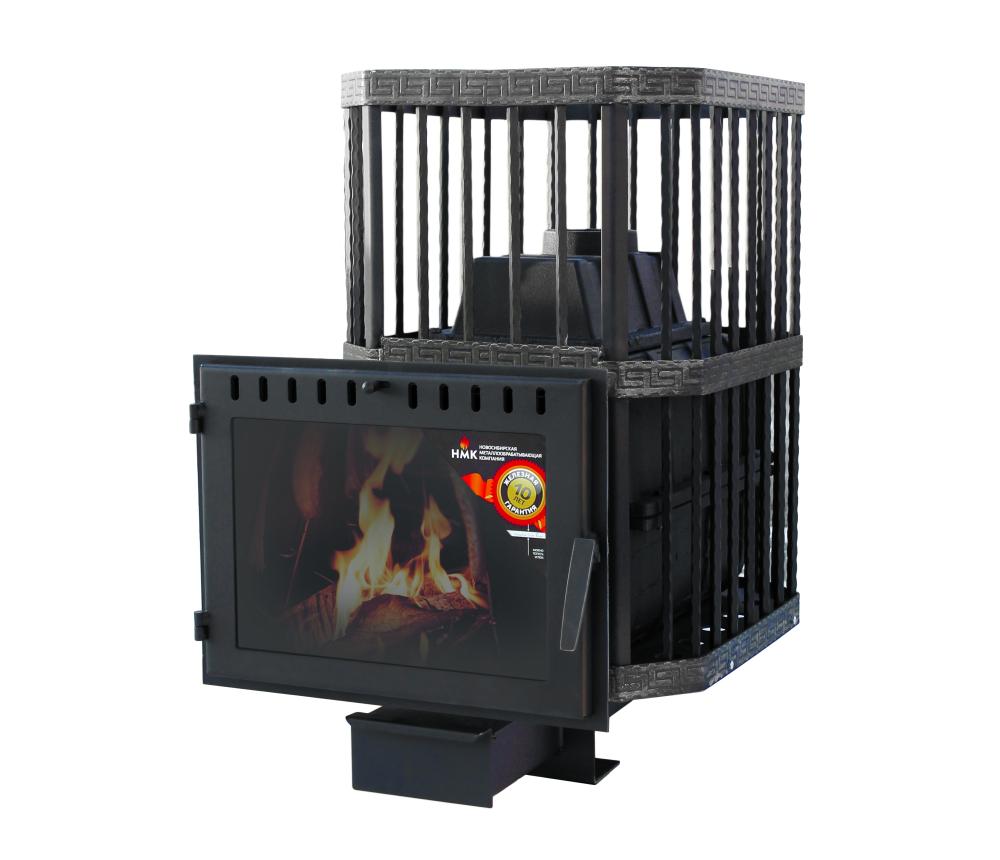 Печь банная НМК Сибирь - 22 чугунная дверка сетка пруток панорама К
