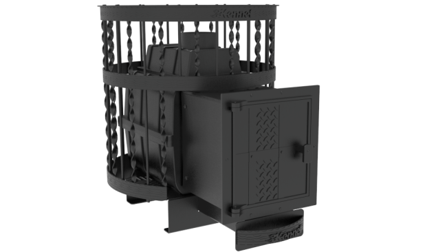 Колосниковая решетка из массивного литейного чугуна обеспечивает равномерное и мощное горение топлива, столь необходимое для банной печи. Печь снабжена удобным выдвижным зольником, который также является регулятором интенсивности горения. Выдвижной зольный ящик позволяет удалять накопившуюся золу, не прерывая процесс горени