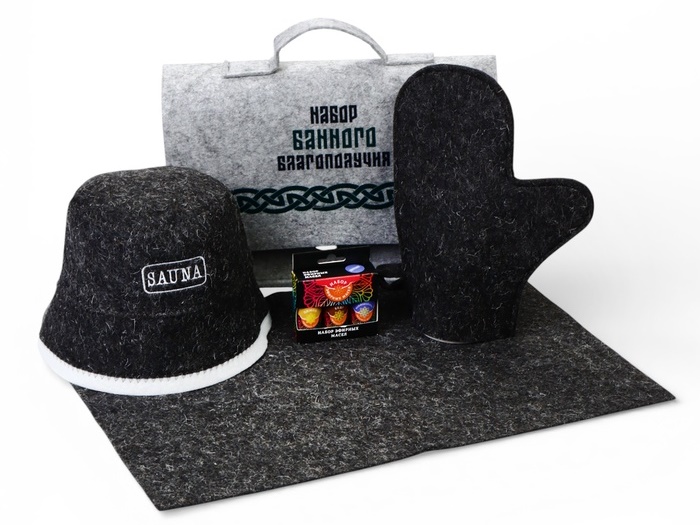 Набор для бани и сауны «Набор банного благополучия», 5 предметов: шапка, рукавица, масла, коврик, по