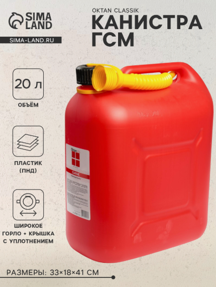 Канистра ГСМ Oktan CLASSIK, 20л, пластиковая, красная