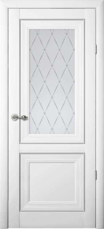 Межкомнатные двери ПО Vinyl Прадо 2200 х 800 белый стекло мателюкс "Гранд" молдинг серебро