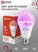 Фито лампа для рассады и раст ЛОН А60 E27 15W 15мкмоль/с 110x60 сине-красн LED-A60-FITO