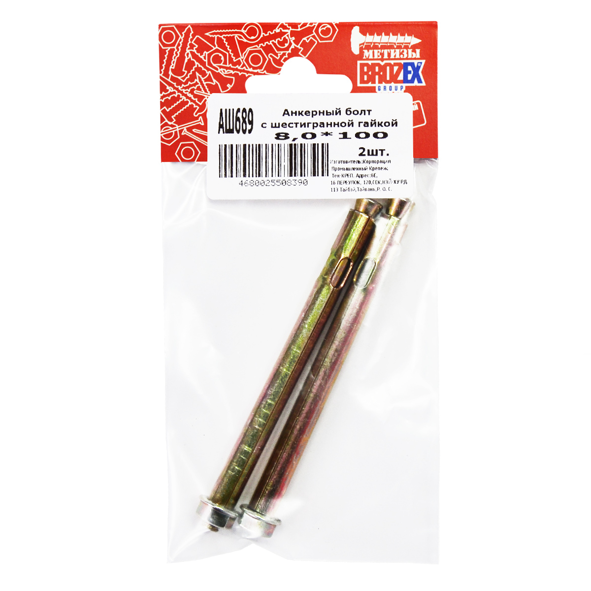 Анкер с гайкой 8х100 (2шт) пакет BROZEX