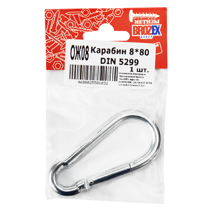 Карабин пожарный 8х80 (1шт) DIN5299 С BROZEX *10