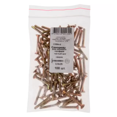 Саморез для оконного профиля частый шаг резьбы, наконечник сверло №2 3.9х35 100 шт. (фасовка)