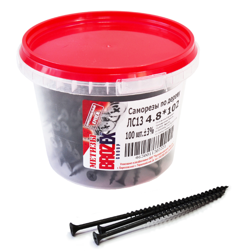 Саморезы по дереву BROZEX ВЕДРО 4,8*102 крупная резьба (100шт)
