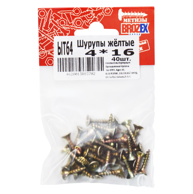 Шурупы жёлтые BROZEX пакет 4*16 (40шт) *10/100