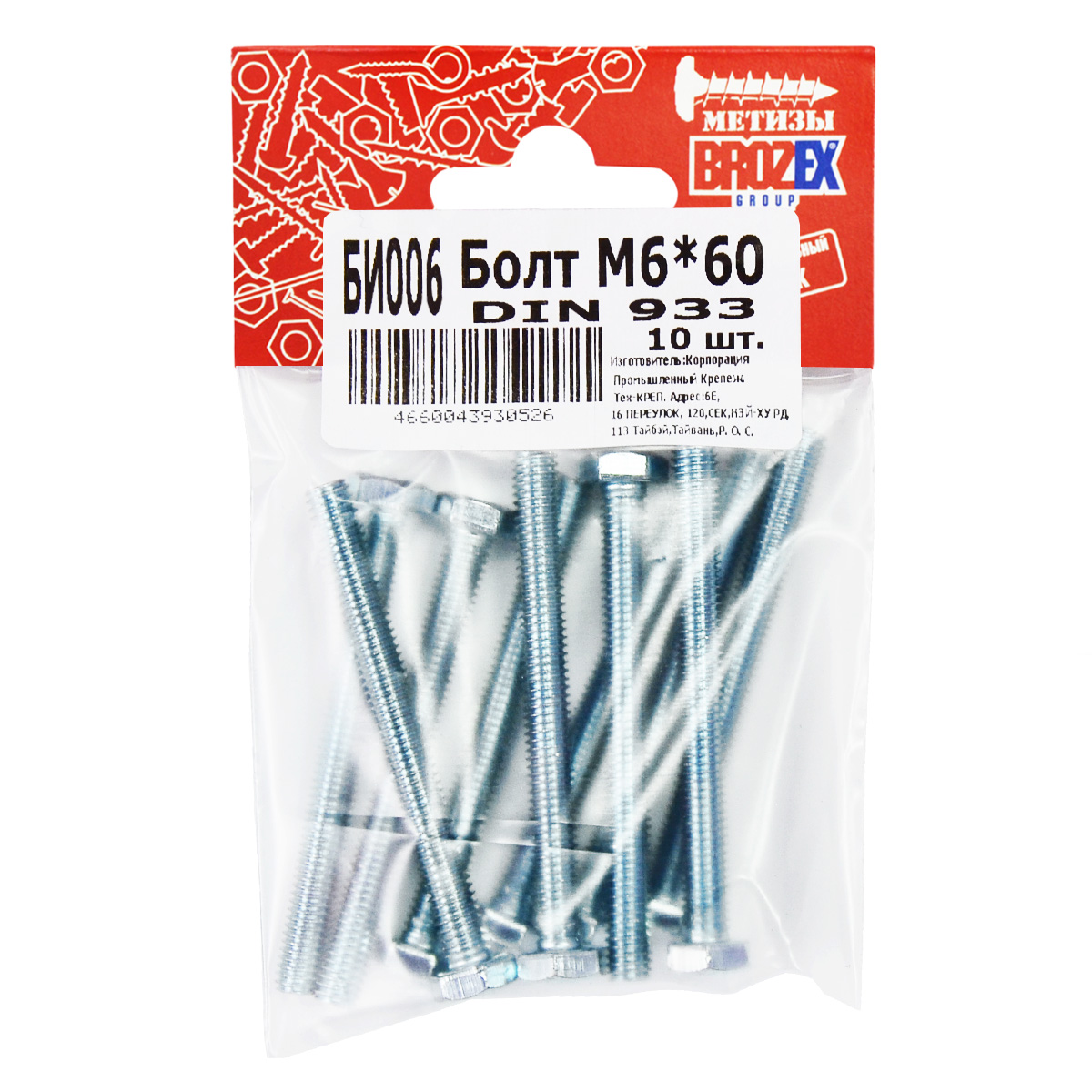 Болт BROZEX М6*60 (10шт) DIN933