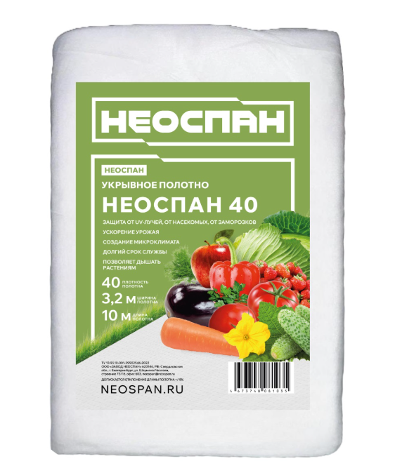 Укрывной материал Белый пл.40г/кв.м, шир.3,2м, дл.10м, в пакете "AGROBIO"/ "НЕОСПАН" *1/12