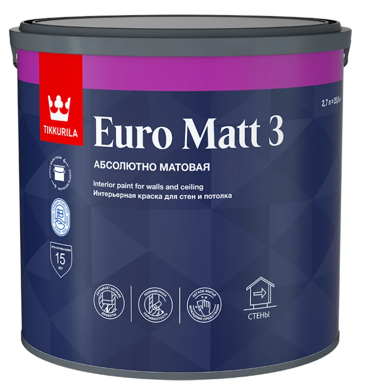 ТИККУРИЛА, Евро 3, база A, 2,7 л. (интерьерная краска для стен и потолка) (Финляндия)