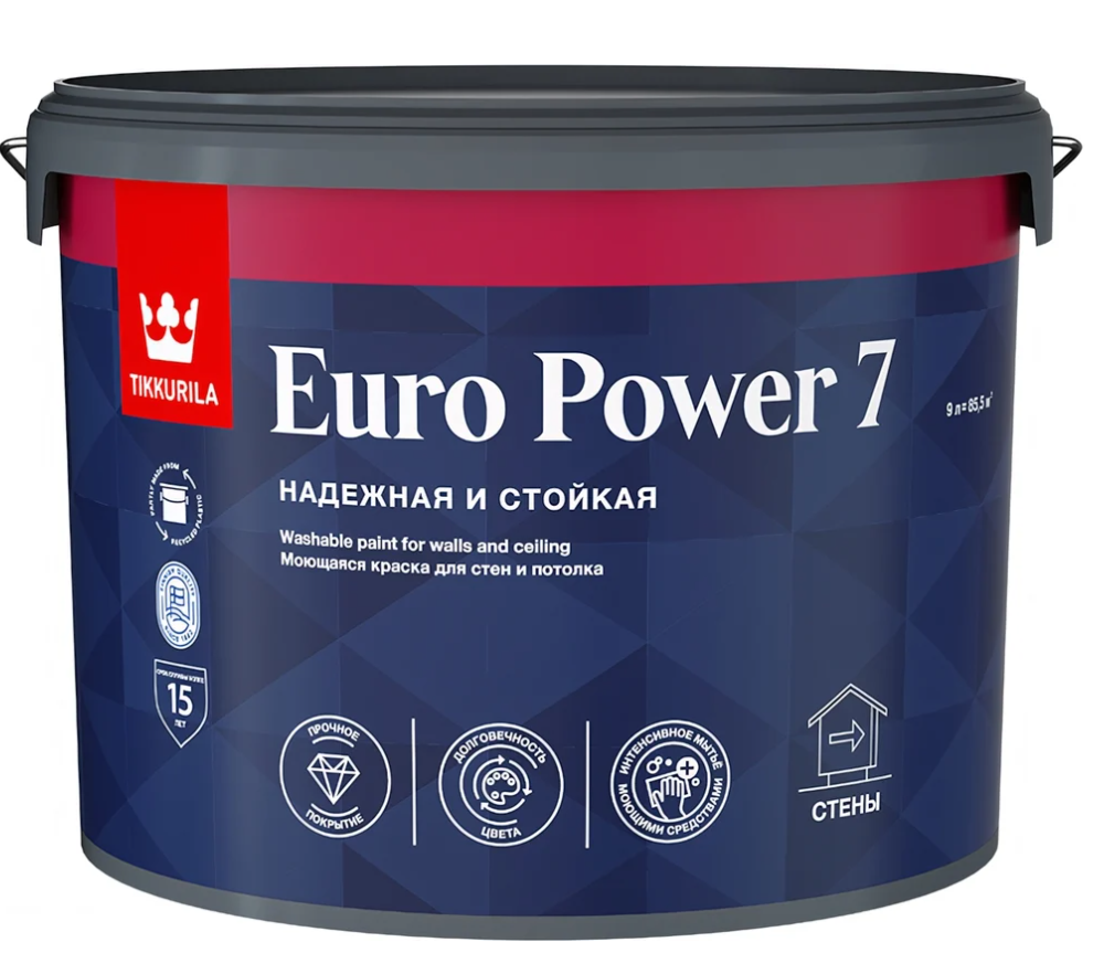 ТИККУРИЛА, Евро 7, база С, 9 л. (моющаяся краска для стен и потолка) (Финляндия)