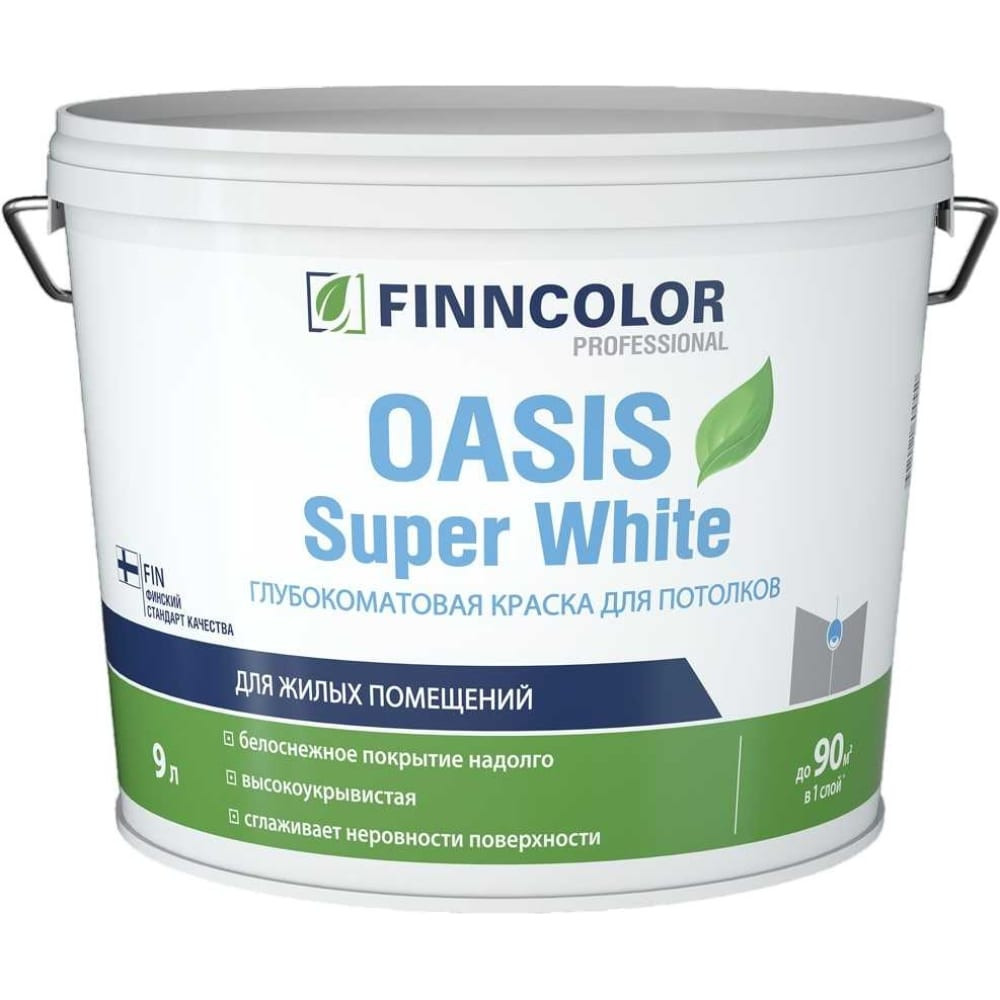 Краска OASIS SUPER WHITE белая гл/мат 9 л. (краска для потолков глубокоматовая)