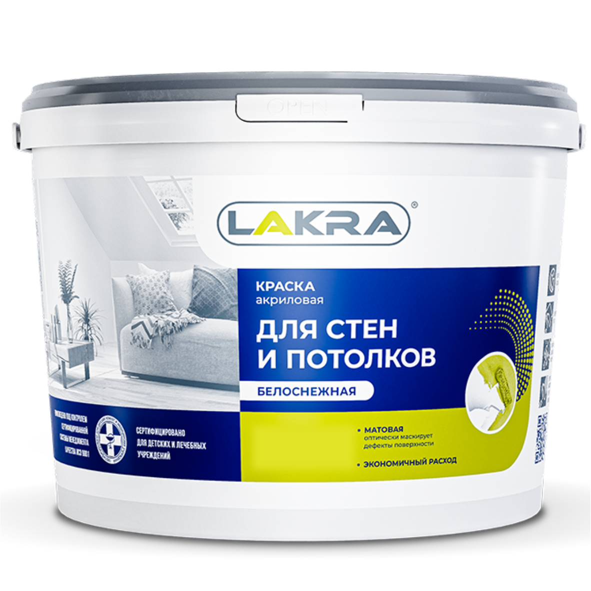 Краска для СТЕН И ПОТОЛКОВ, акриловая, 1,3 кг. (белоснежная, матовая), Лакра