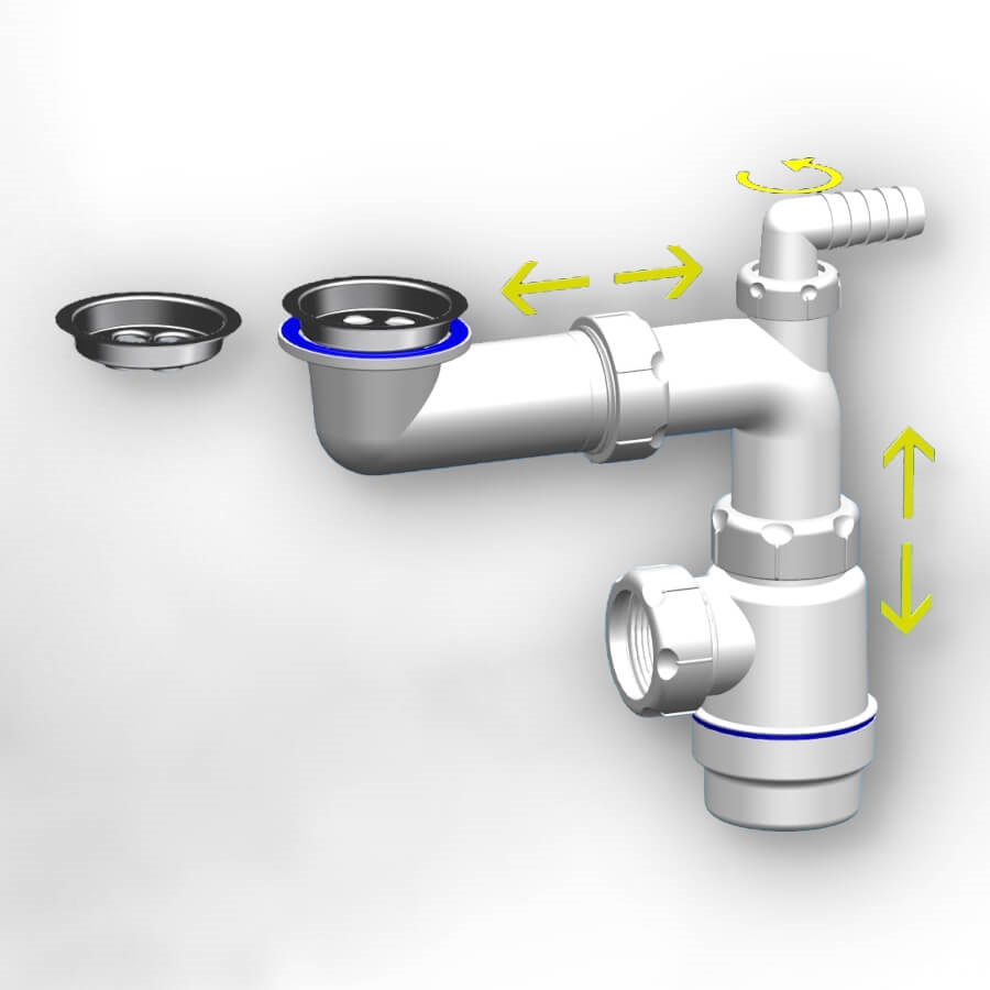 Сифон мини 1 1/2х40 телескоп. с нержавеющим выпуском 63 мм и отводом