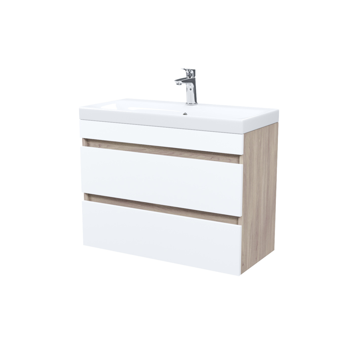 IDDIS Тумба с умывальником подвесная с ящиками, белая/ под дерево, 80 см, Zodiac, IDDIS, ZOD8AB0i95K