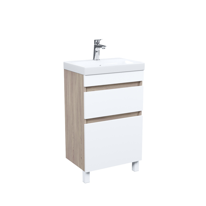 IDDIS,Тумба с умывальником напольная с ящиками, 50 см, белая/под дерево, Zodiac, ZOD5ABFi95K