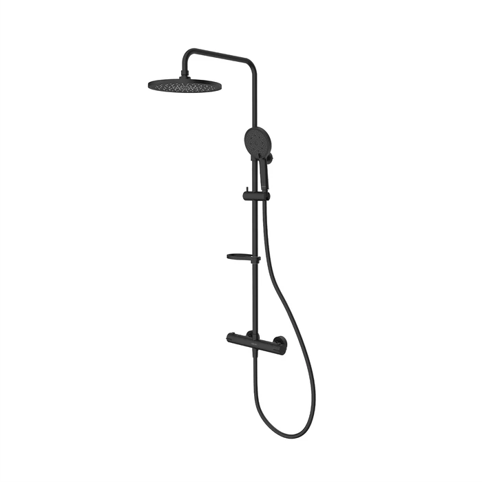 Смеситель термостат. для душа со стойкой и тропической лейкой, черный матовый, Ideal Spa, ILSBLTHM89