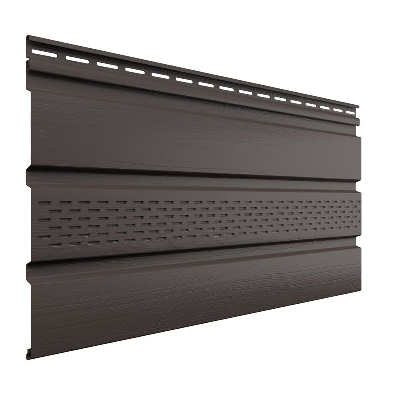 Софиты являются облицовочным материалом, который используют для отделки таких конструкций как карнизы кровли, выступы крыш дач, беседок, крылец; они улучшают вентиляцию пространства под кровлей, завершают декоративное оформление карнизных свесов крыш в любой климатической зоне; отлично подходят к множеству видов фасадов и кровель.