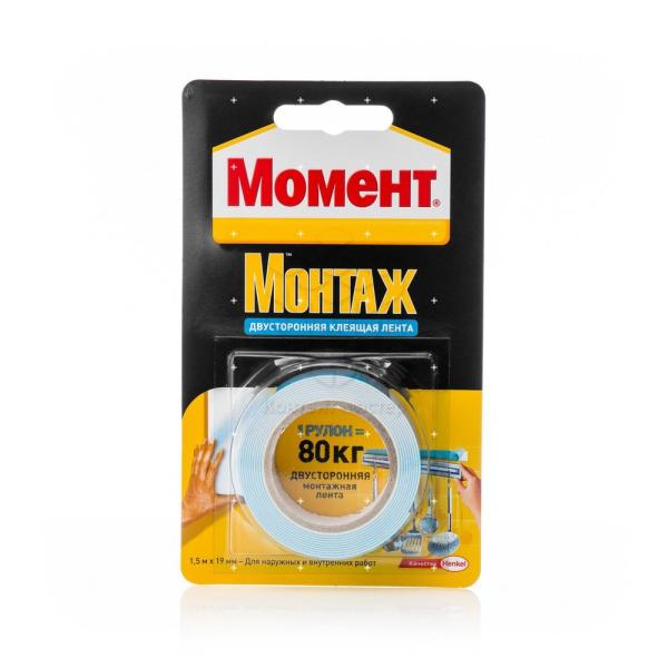 Лента Клейкая монтажная двусторонняя Момент 80 кг/1,5 м