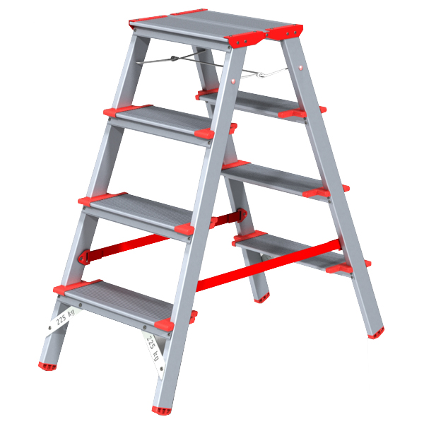 Стремянка 4 ступени 2-х СТОРОННЯЯ "ЯРУС" стальная, выс. верхн. пл. 0,82 м