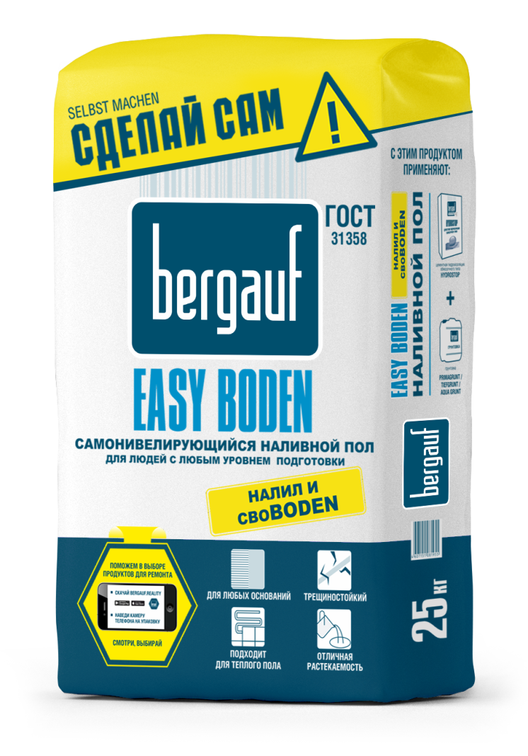 Быстротвердеющий наливной пол Бергауф ИЗИ БОДЕН, универсальный, толщ. 5-50 мм, 25 кг. (54шт/пал)