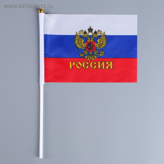 Флаг России с гербом 14*21 см, шток 30 см, шёлк 3653417