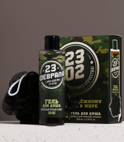 Подарочный набор «23 Февраля»: гель для душа 200 мл и мочалка для тела, HARD LIN