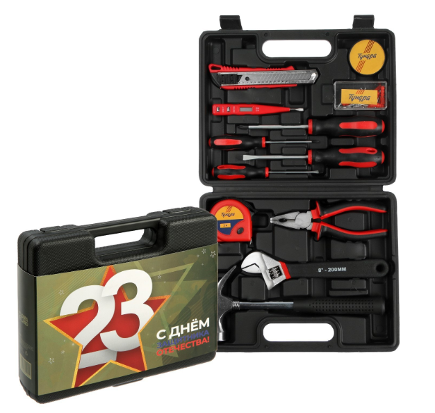 Набор инструментов в кейсе ТУНДРА «23 ФЕВРАЛЯ», в подарочной упаковке, 12 предметов