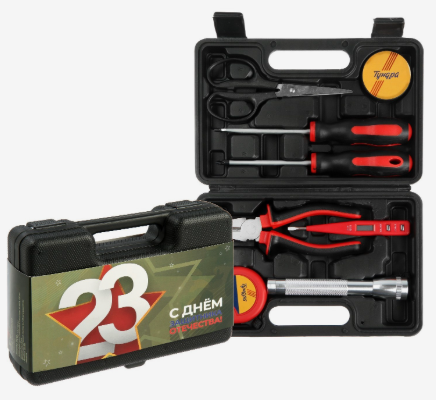 Набор инструментов в кейсе ТУНДРА «23 ФЕВРАЛЯ», в подарочной упаковке, 8 предметов