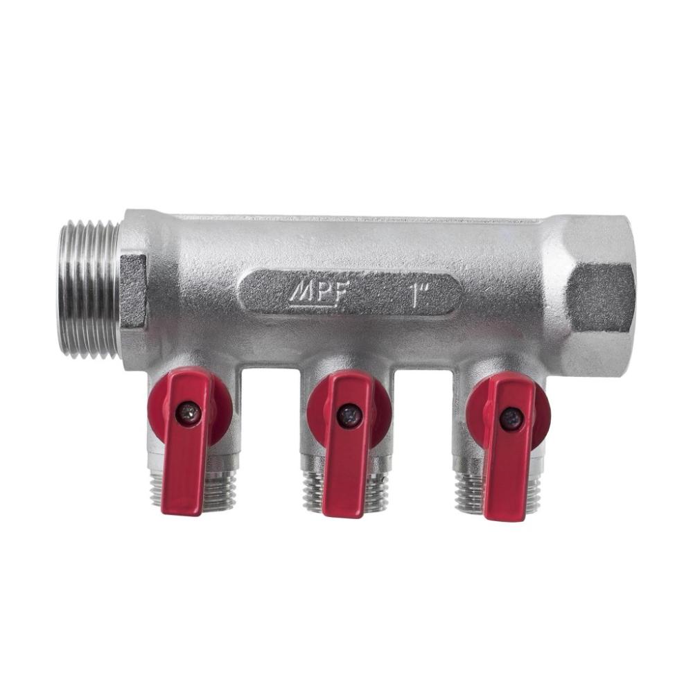 Коллектор с отсекающими кранами 1"х1/2"х3 вых.