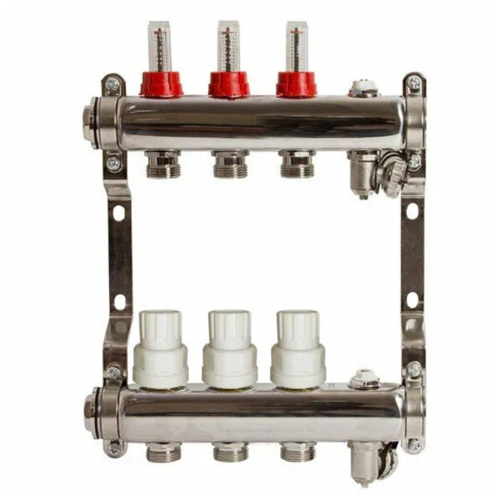 Коллекторная группа STI в сборе со встр.расх. из нерж. стали 1"х3 вых. Еврорконус 3/4